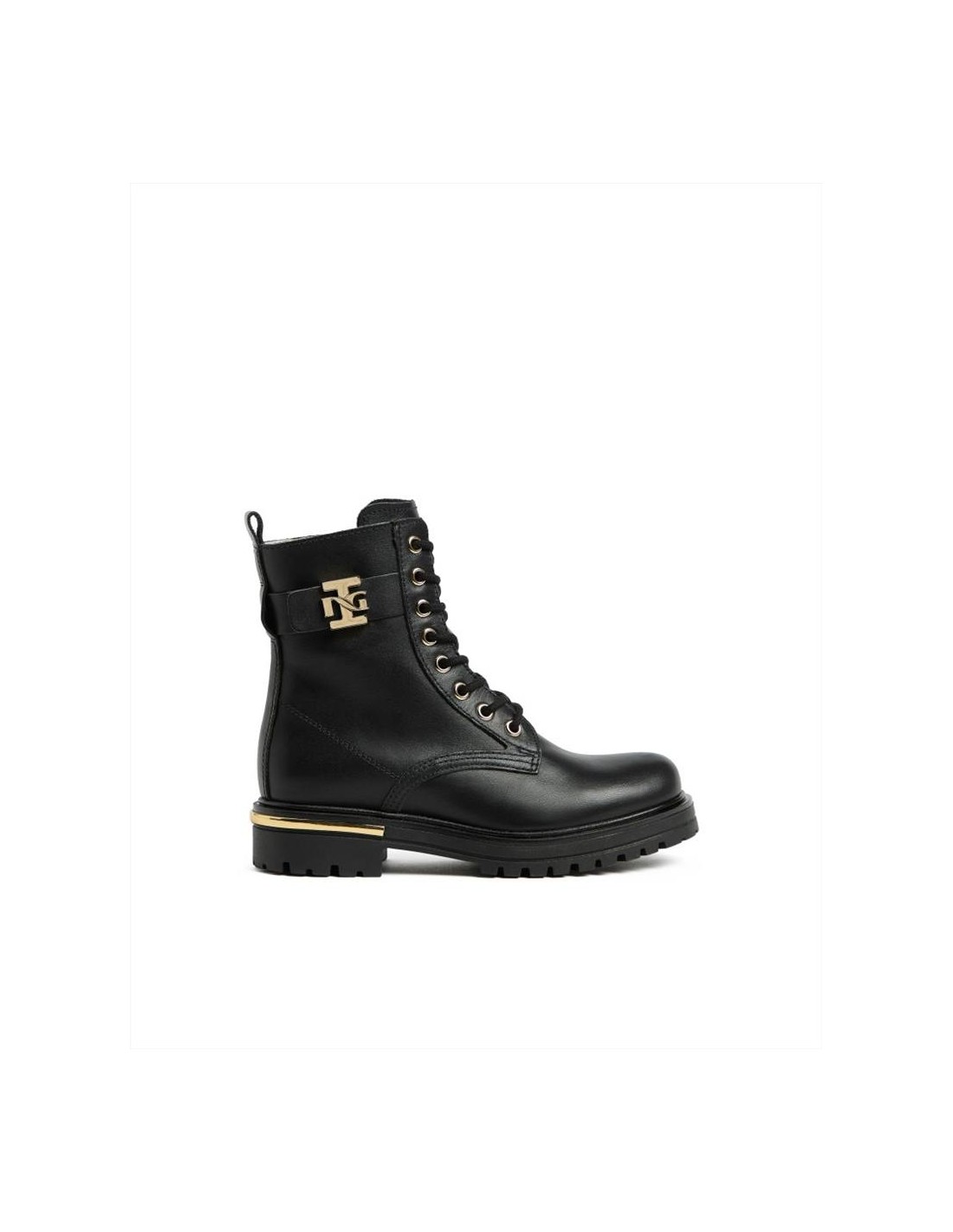 L’anfibio nero Nero Giardini Teen I533490F è una calzatura dallo stile deciso ed elegante, pensata per ragazze che vogliono un look moderno con un tocco raffinato. Il design classico dell’anfibio si arricchisce del dettaglio dorato con logo sul cinturino, che dona luminosità e carattere senza rinunciare alla versatilità.