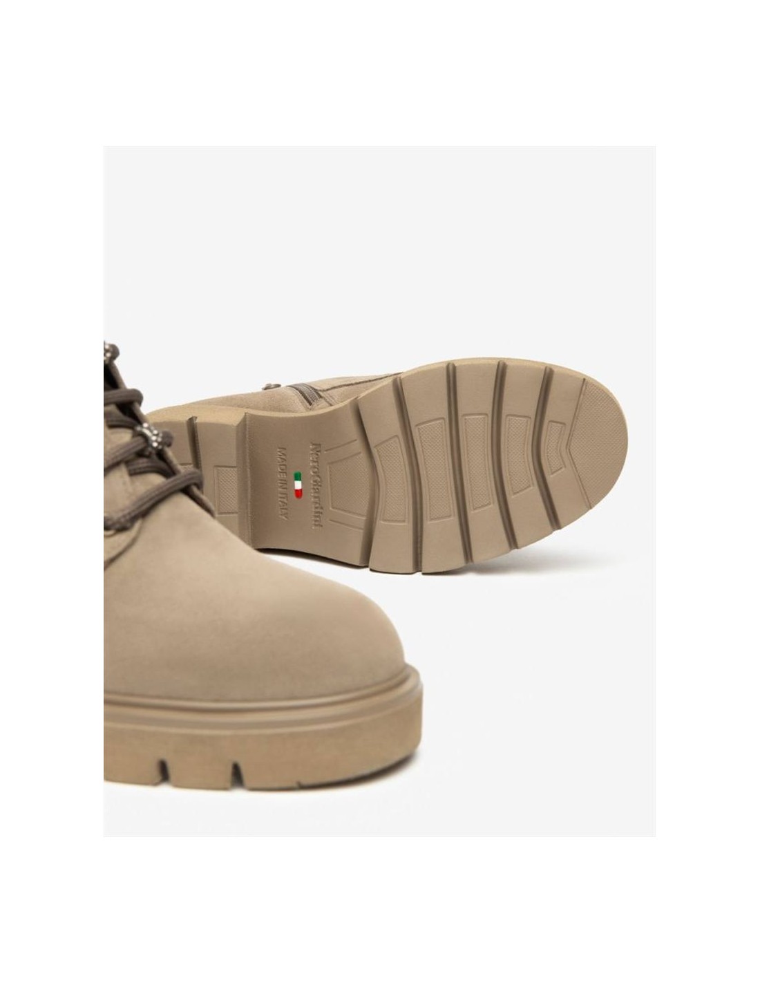 La tomaia è realizzata in morbido camoscio color Argilla, una tonalità calda e naturale che dona un look sofisticato e facilmente abbinabile a outfit casual chic, pantaloni, jeans o gonne. Le linee armoniose e le finiture curate esaltano la texture vellutata del camoscio, rendendo l’anfibio elegante ma allo stesso tempo resistente e pratico.