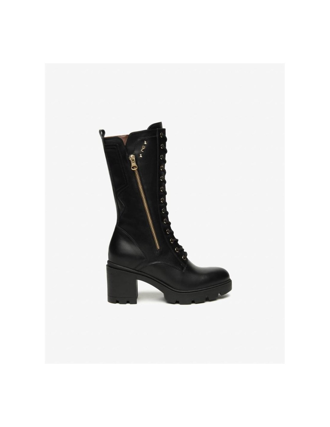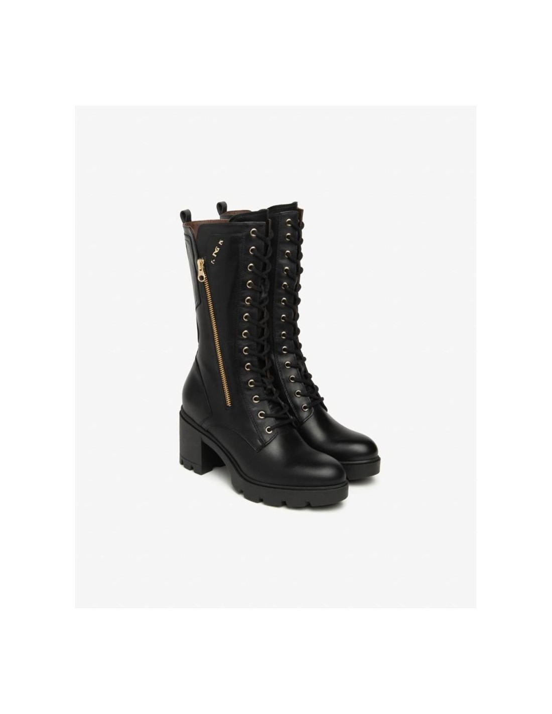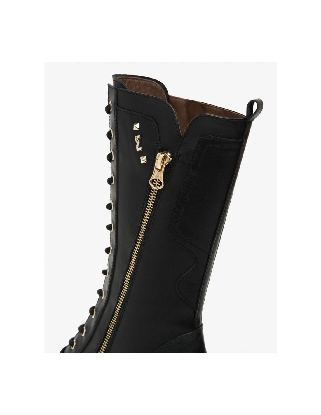 La tomaia è realizzata in pelle nera di alta qualità, con dettagli curati che conferiscono uno stile sofisticato e moderno. Il design con lacci frontali non solo valorizza la silhouette del piede, ma consente anche una calzata regolabile e comoda, rendendo lo stivale perfetto per l’uso quotidiano. Le linee armoniose e le finiture accurate riflettono l’eccellenza artigianale di Nero Giardini.