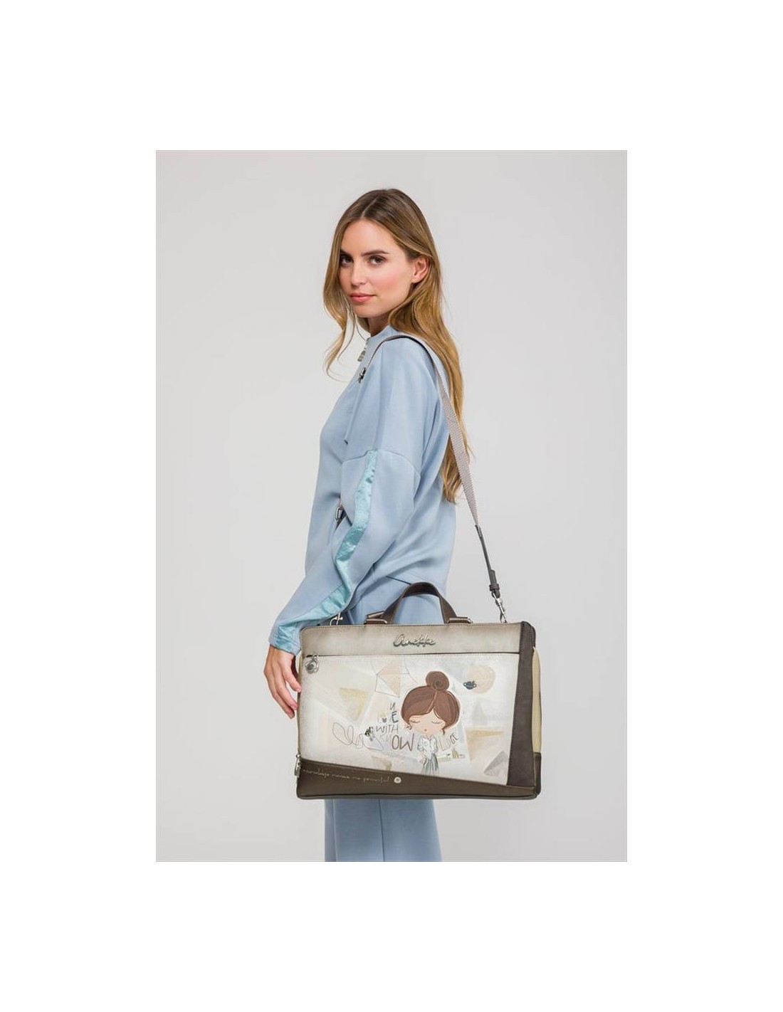 Le grafiche e le finiture curate, tipiche dello stile Anekke, trasformano una classica borsa da lavoro in un accessorio distintivo e femminile, perfetto per un look business chic.
