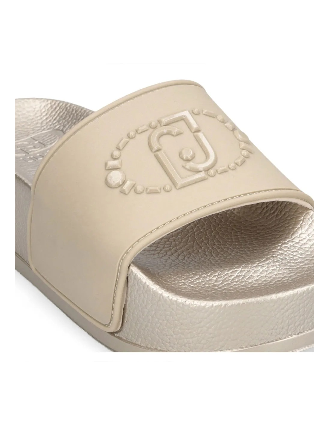 Il colore beige, delicato e luminoso, rende questa ciabatta perfetta per creare abbinamenti armoniosi con look chiari, naturali o monocromatici. La suola platform dona slancio alla silhouette garantendo al tempo stesso stabilità e comodità, ideale per affrontare la giornata con leggerezza. La fascia superiore è impreziosita dal logo Liu Jo, elemento distintivo che conferisce personalità e riconoscibilità al design.