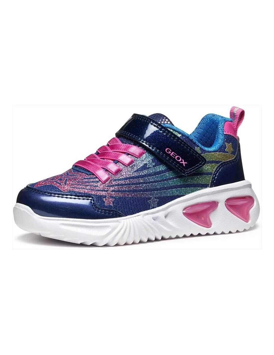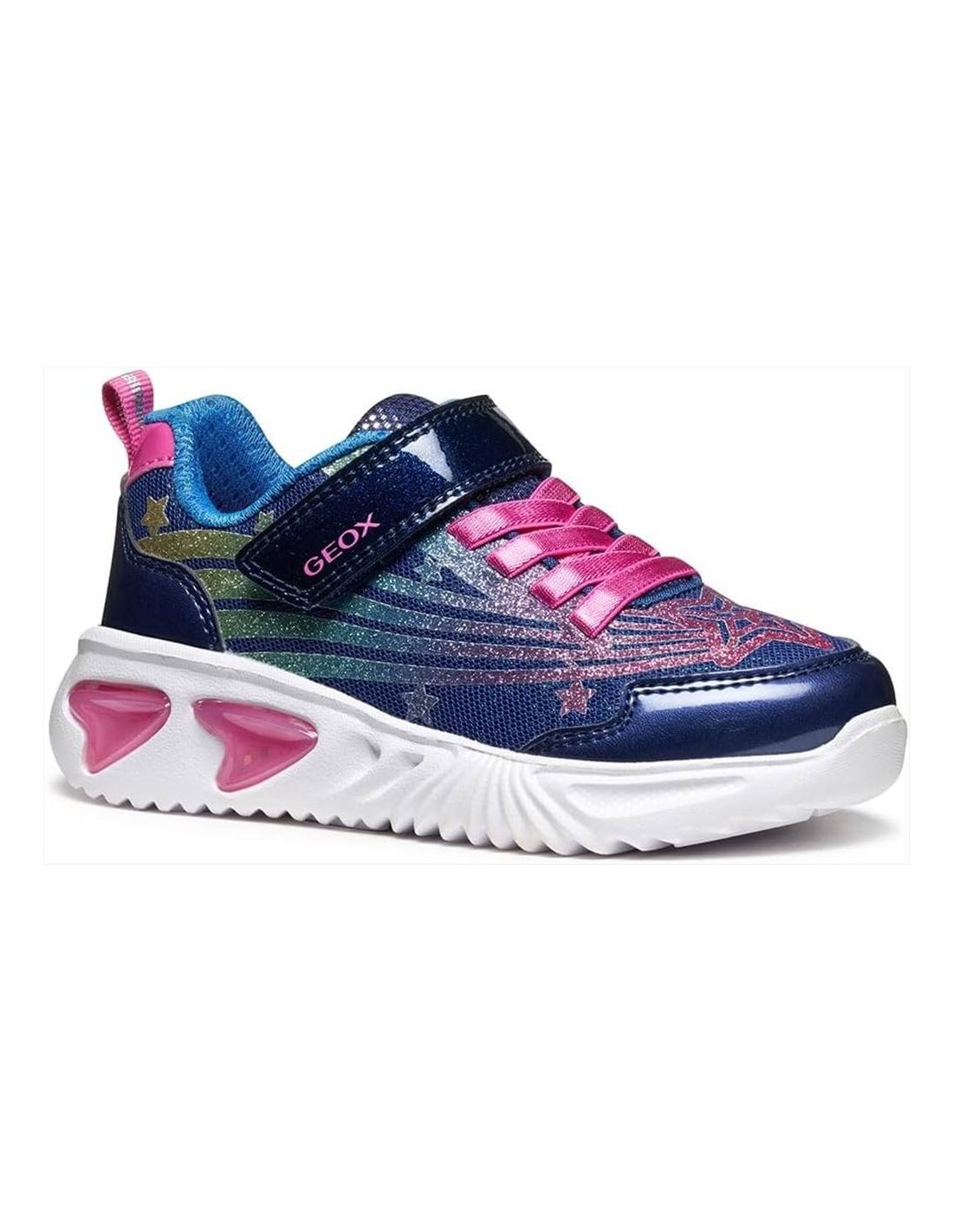 Le sneakers Geox da bimba J56E98 blu con glitter rosa e verdi sono pensate per unire comfort, qualità e un design brillante che non passa inosservato. Ideali per la scuola e il tempo libero, queste scarpe rappresentano una scelta perfetta per le bambine che amano uno stile allegro senza rinunciare alla comodità.