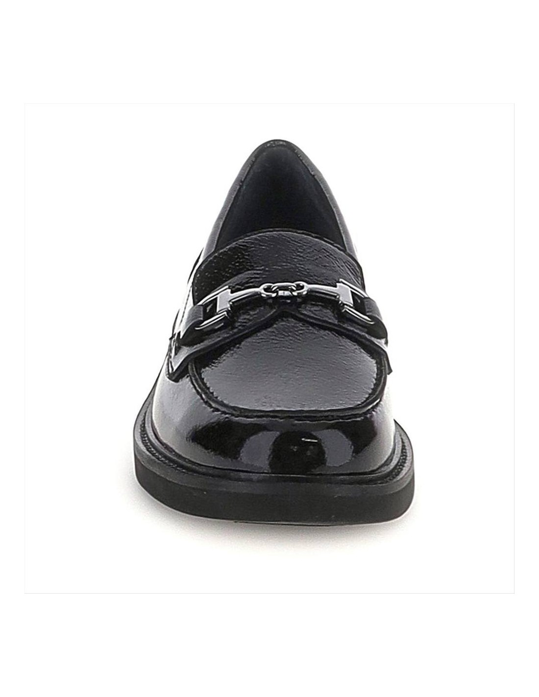 La finitura in vernice lucida dona carattere e un tocco glamour alla scarpa, valorizzando un design classico reinterpretato in chiave contemporanea. Linee pulite e silhouette femminile rendono questo mocassino un must-have per la stagione, perfetto per chi ama dettagli curati e di tendenza.