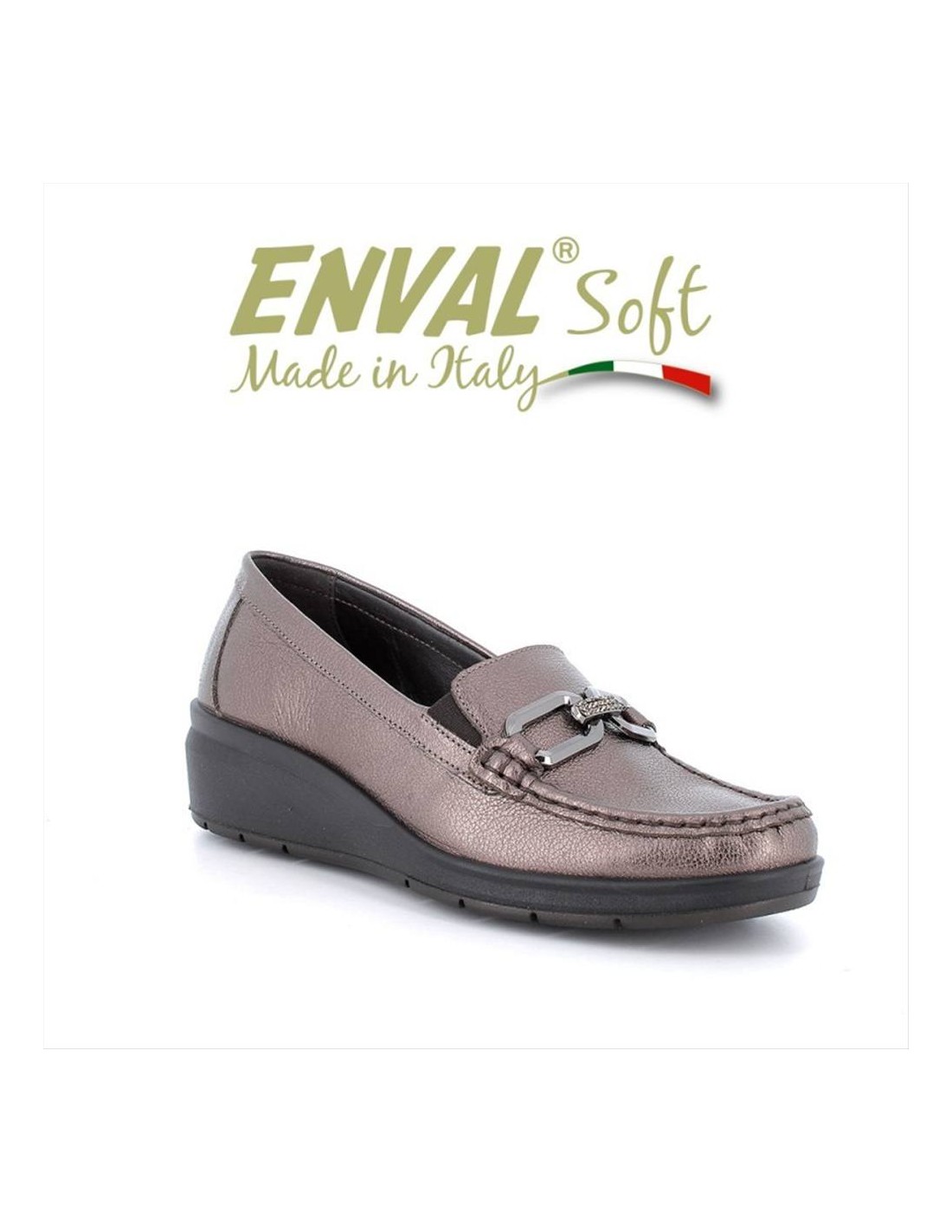 I mocassini Enval Soft bronzo con zeppa 875866 rappresentano il perfetto equilibrio tra stile femminile e funzionalità, ideali per l’ufficio, il tempo libero e le occasioni in cui comfort ed eleganza sono fondamentali.