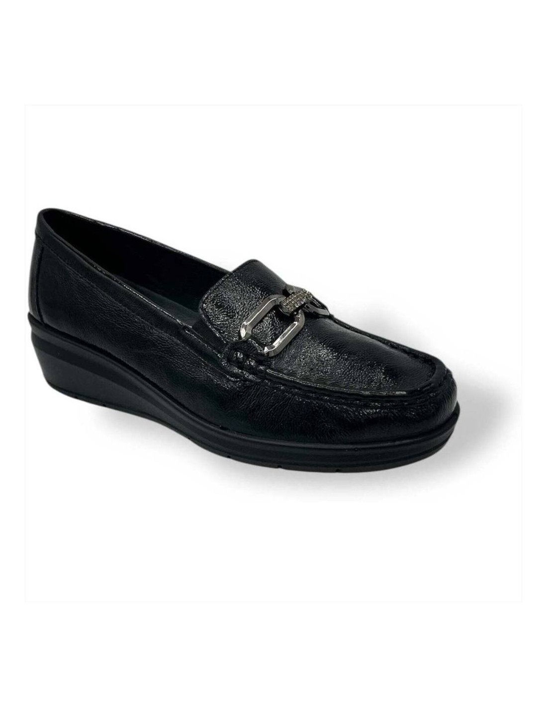 Il mocassino Enval Soft nero con zeppa e catenella con brillantini 8758611 rappresenta la scelta perfetta per la donna che cerca una calzatura pratica ma ricercata, capace di coniugare eleganza moderna e comodità.