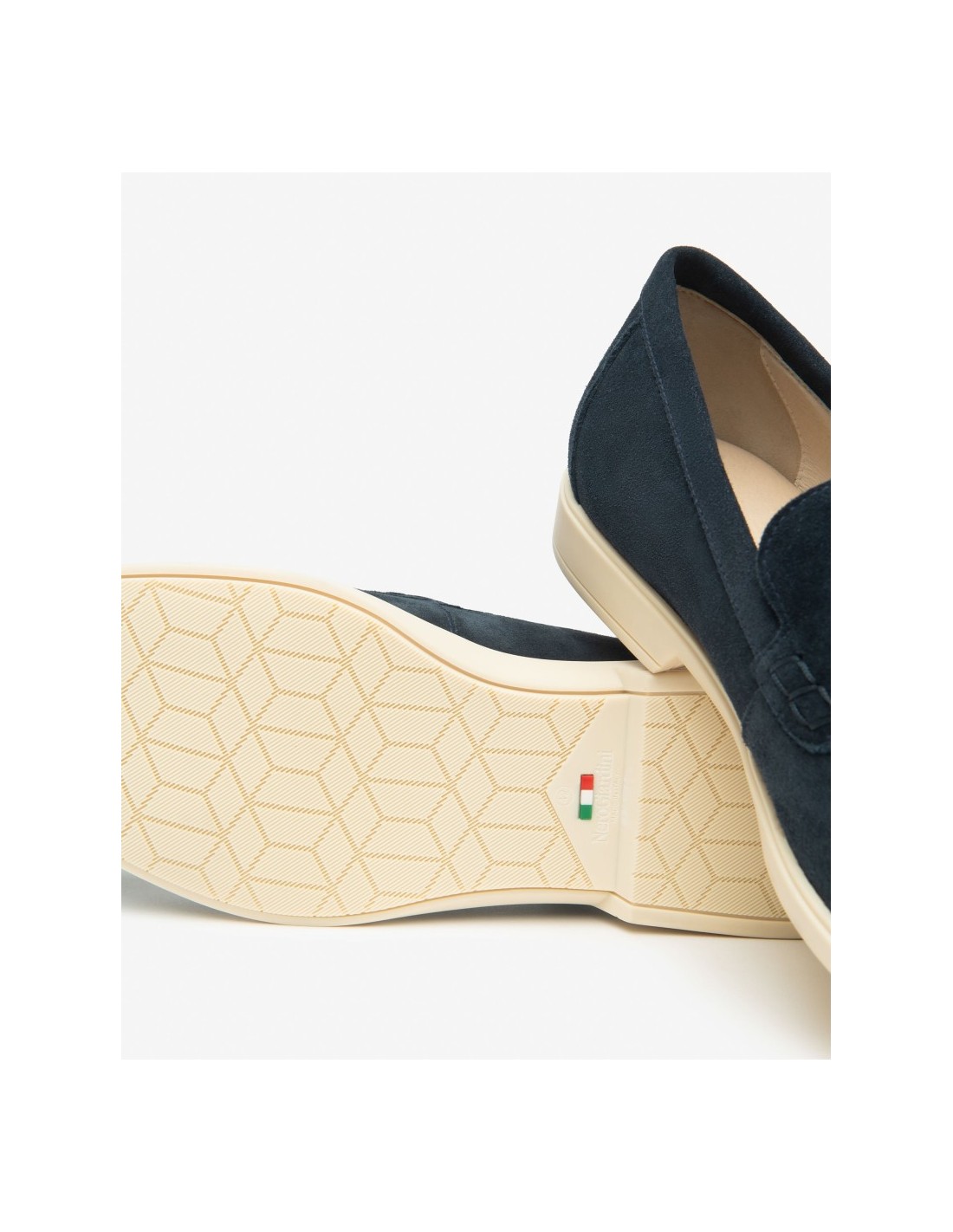 Il contrasto elegante tra beige e navy aggiunge personalità e raffinatezza al look, rendendo i mocassini facilmente abbinabili a pantaloni chino, jeans, pantaloni eleganti o outfit casual-chic. Il design classico, rivisitato in chiave contemporanea, unito alle finiture curate e al logo NeroGiardini, esprime qualità, stile e attenzione ai dettagli tipici del brand.