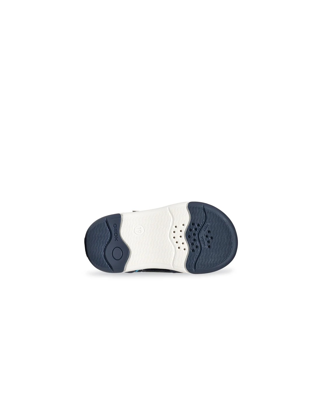 I sandali da bambino Geox Zapito B556EA in colore navy sono la scelta ideale per accompagnare i più piccoli durante la stagione estiva, combinando perfettamente comfort, traspirabilità e praticità. Progettati per garantire libertà di movimento e benessere durante tutta la giornata, questi sandali rappresentano una soluzione versatile e resistente, perfetta per il tempo libero, le passeggiate e le attività all’aperto. Il design sportivo e moderno, valorizzato dall’elegante tonalità blu navy, si abbina facilmente a qualsiasi outfit estivo da bambino, come shorts, jeans o completi casual, rendendo il modello Zapito una calzatura pratica ma anche stilosa. La struttura aperta favorisce una naturale ventilazione del piede, aiutando a mantenere una piacevole sensazione di freschezza anche nelle giornate più calde. I pratici strap con chiusura a strappo permettono una calzata facile e veloce, consentendo ai bambini di indossare e togliere i sandali con autonomia; allo stesso tempo garantiscono una regolazione precisa che assicura stabilità e comfort durante il movimento. Come tutte le calzature firmate Geox, anche i sandali Zapito sono dotati della famosa suola traspirante brevettata, studiata per favorire la naturale termoregolazione del piede e permettere la fuoriuscita dell’umidità senza far entrare acqua dall’esterno. Questa tecnologia contribuisce a mantenere il piede asciutto e confortevole per molte ore. La suola è inoltre leggera, flessibile e resistente, progettata per seguire i movimenti naturali del piede e offrire una buona aderenza al terreno, caratteristica fondamentale per accompagnare i bambini mentre giocano, camminano o corrono. I sandali bambino Geox Zapito B556EA navy con strappi sono quindi una scelta perfetta per chi cerca una calzatura estiva affidabile, comoda e durevole, capace di unire qualità dei materiali, funzionalità e stile in un unico modello pensato per il benessere quotidiano dei più piccoli.