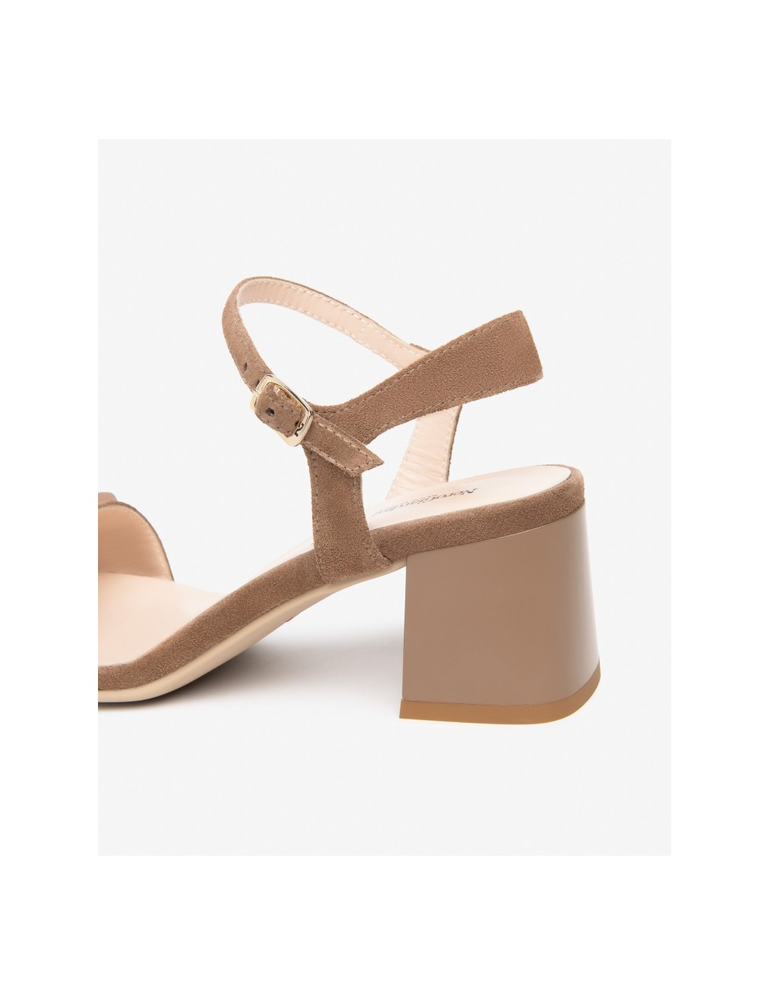 Pensato per la stagione primavera-estate, il sandalo NeroGiardini in camoscio con tacco è un must-have per chi cerca una calzatura durevole, alla moda e sempre attuale.