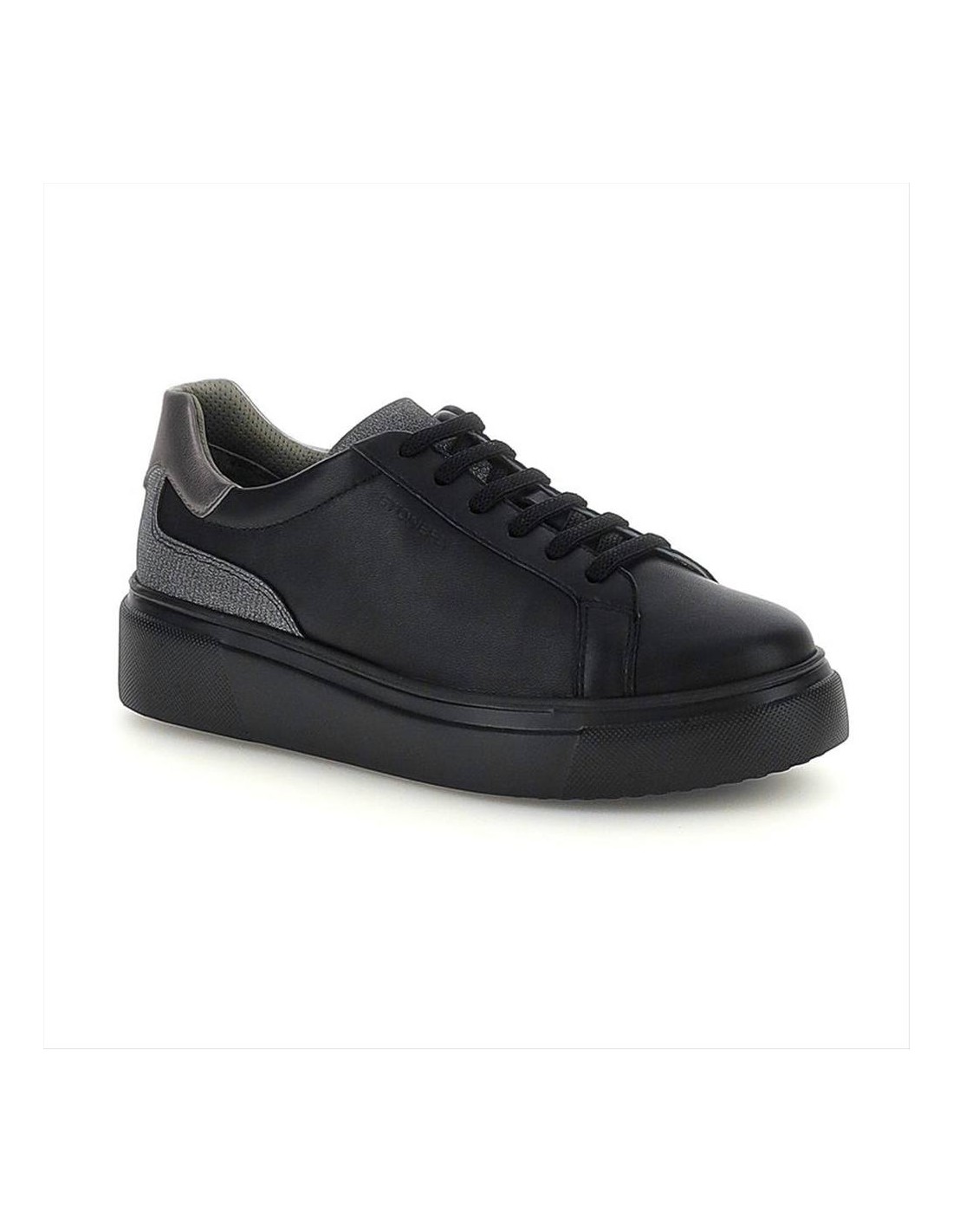 Il colore nero elegante è impreziosito da raffinati dettagli glitter, che catturano la luce e valorizzano la scarpa con discrezione. La silhouette essenziale e contemporanea rende questa sneaker versatile e facile da abbinare, perfetta per la vita di tutti i giorni.