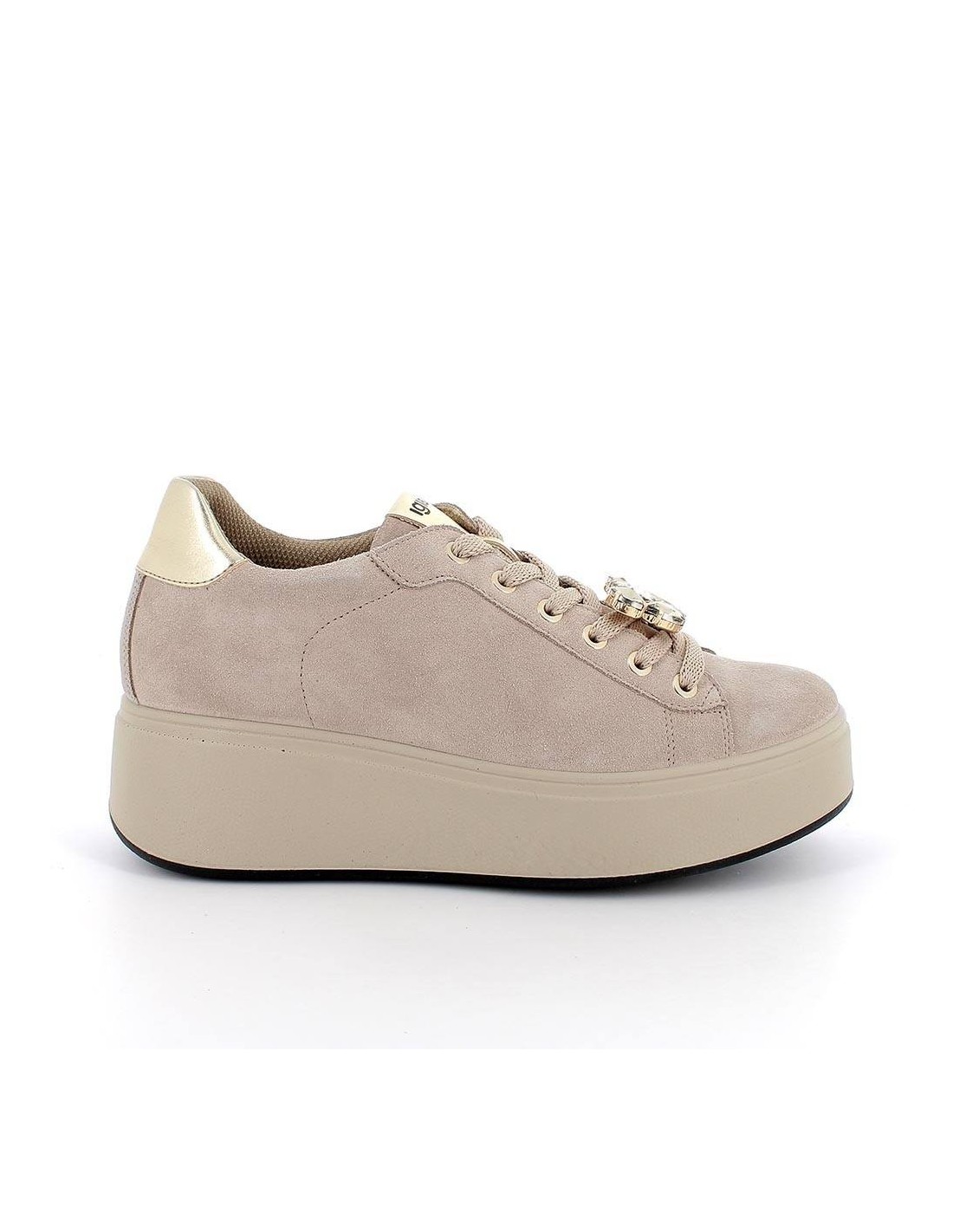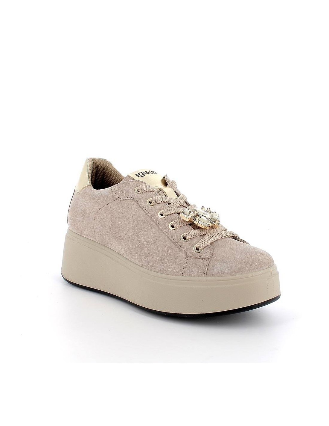 Ideali da abbinare a jeans, pantaloni o abiti casual, le sneakers platform IGI&CO beige in camoscio con accessorio gioiello sono la scelta perfetta per chi cerca eleganza, comfort e uno stile sempre attuale.