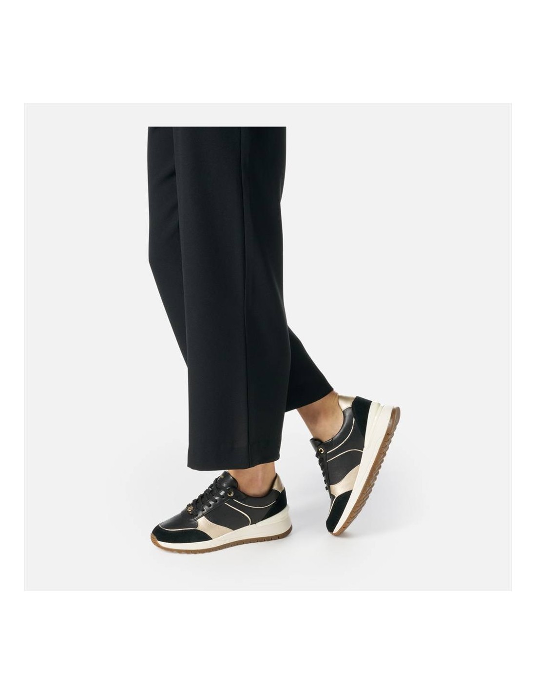 Grazie al design moderno e alla combinazione di colori elegante, la Geox D5500A nera con dettagli oro è ideale per accompagnarti in ogni momento della giornata, dal tempo libero agli impegni quotidiani.