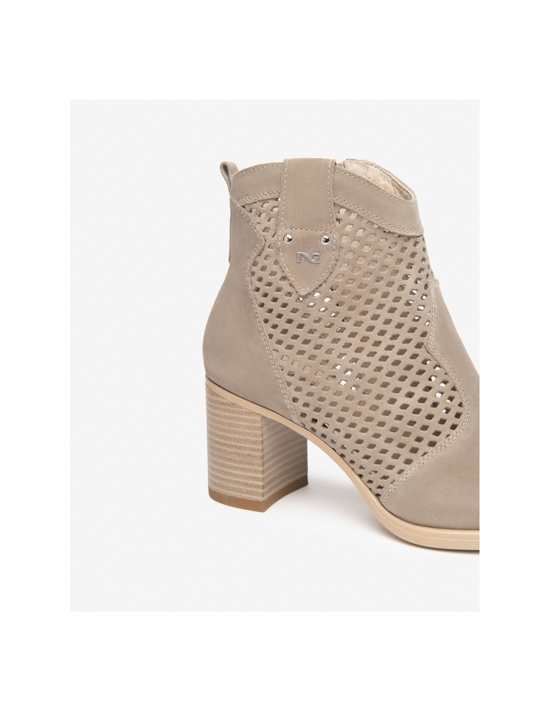 Realizzati in pelle color beige di alta qualità con lavorazione traforata, questi stivaletti assicurano resistenza, durata e una piacevole sensazione al tatto, oltre a garantire traspirabilità e leggerezza durante tutta la giornata. Il design texano reinterpretato in chiave femminile dona carattere al look, mentre il tacco comodo e la suola flessibile offrono stabilità e comfort anche durante lunghe passeggiate.