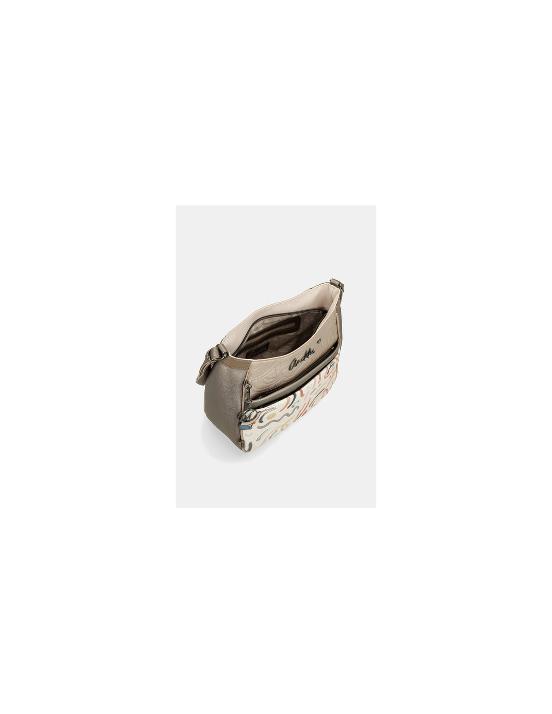 Realizzata con materiali di alta qualità e rifinita con inserti decorativi esclusivi, la tracolla Anekke esprime uno stile romantico e contemporaneo, tipico del brand. La dimensione grande offre ampio spazio interno per organizzare comodamente portafoglio, smartphone, agenda e tutti gli oggetti essenziali, mantenendo ordine e funzionalità.