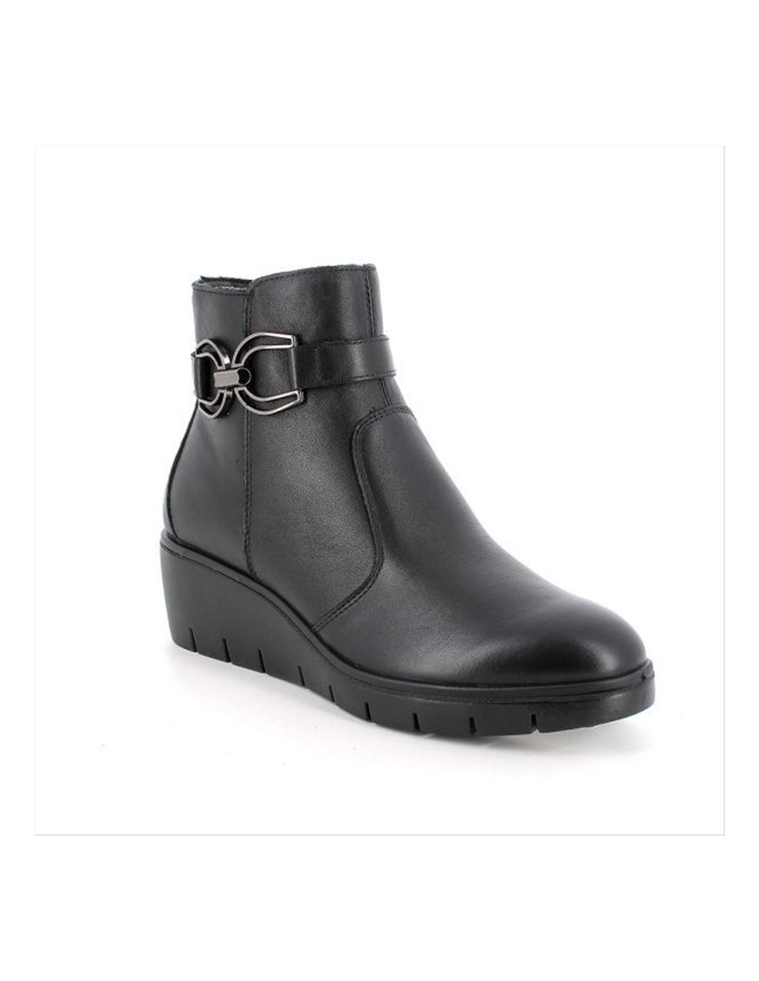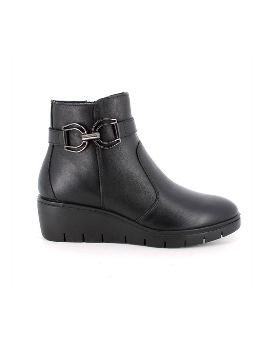 Realizzati in pelle nera di alta qualità, questi stivaletti si distinguono per il loro look sobrio e femminile, facilmente abbinabile a jeans, pantaloni, gonne o abiti. La zeppa integrata assicura qualche centimetro in più senza compromettere la stabilità, garantendo una camminata sicura e naturale anche durante un utilizzo prolungato.