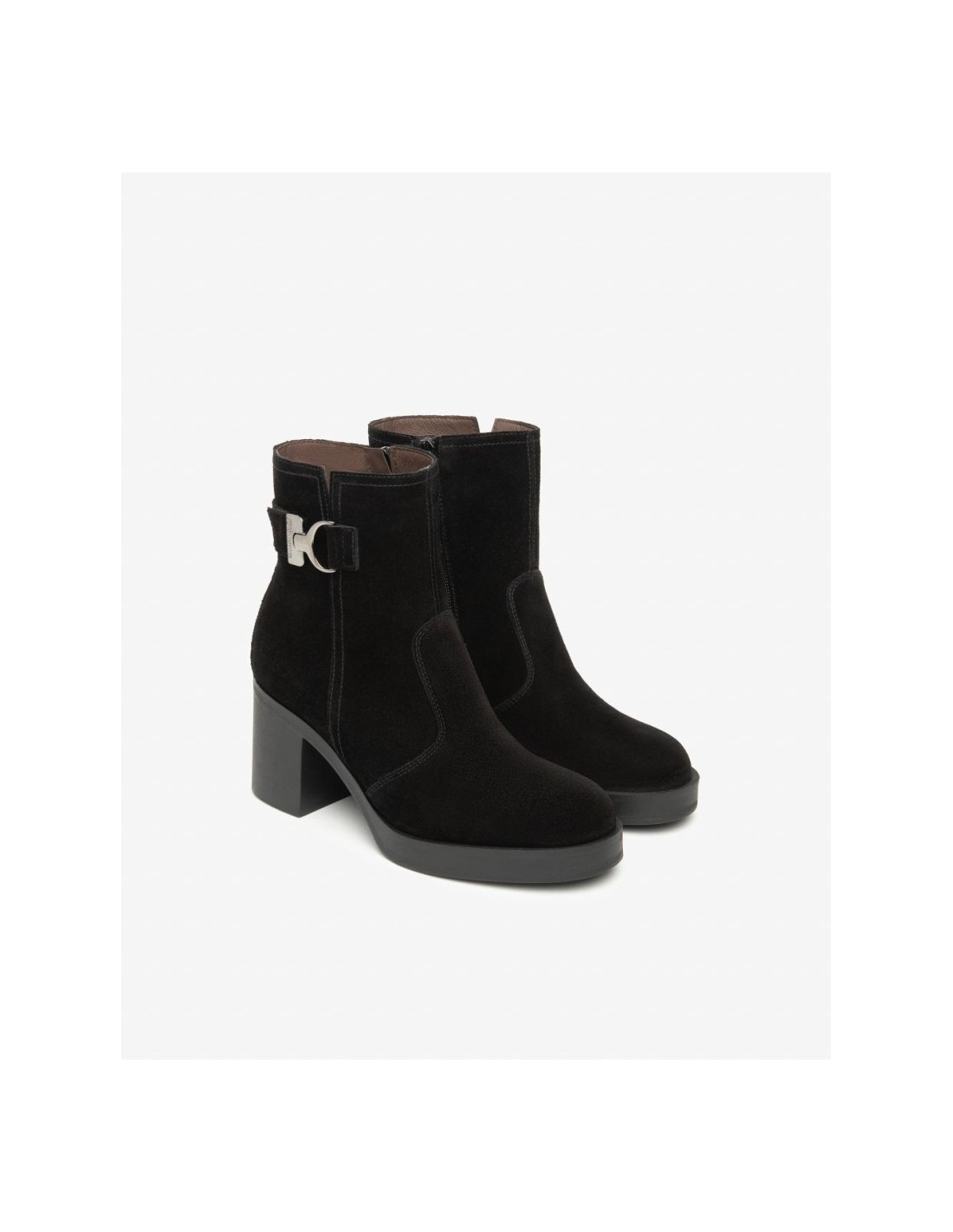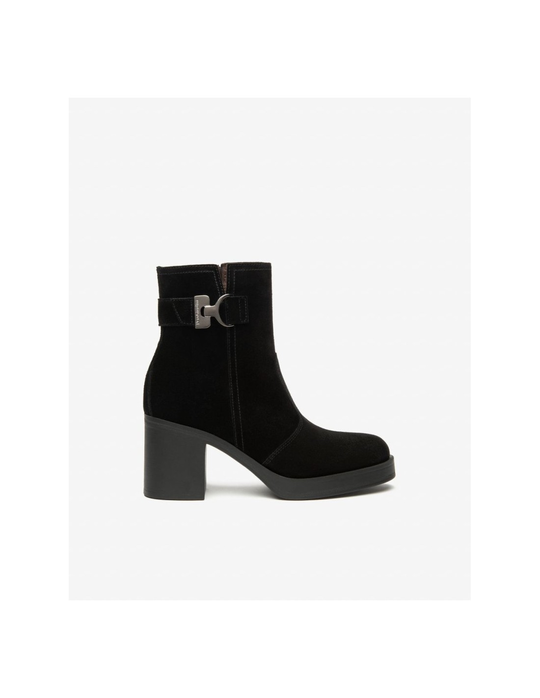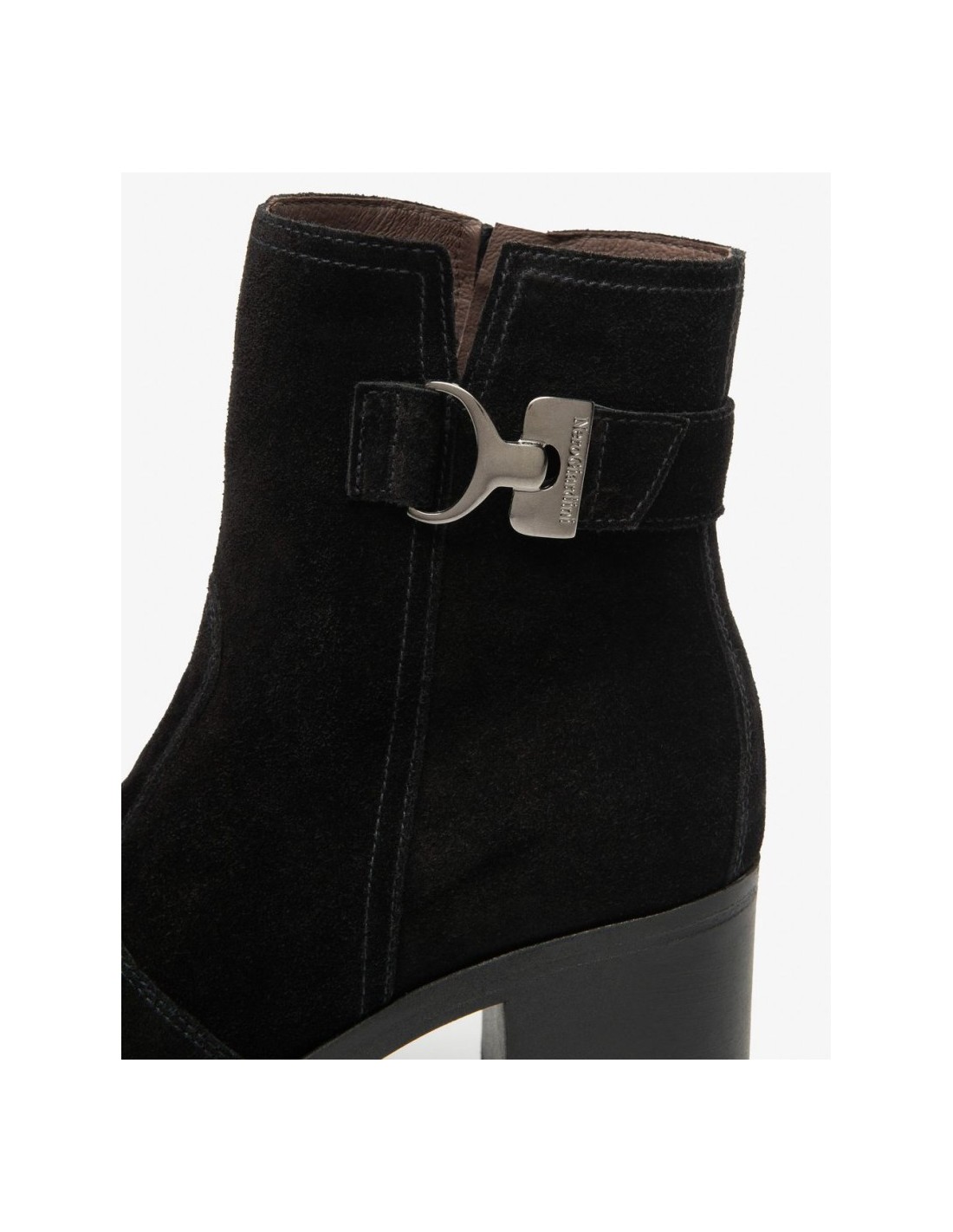 STIVALETTO TACCO FIBBIA CAMOSCIO NERO